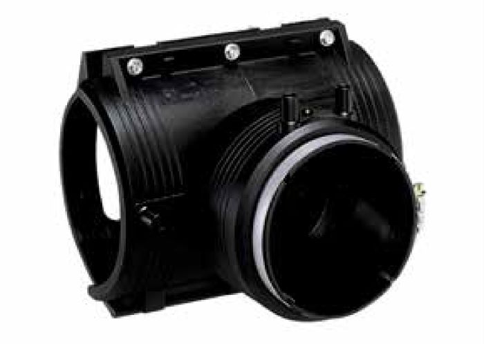 Воздушно-камерная запорная арматура (Рис. 10) — полиэтиленовый фитинг с ЗН в виде седловидной накладки с патрубком, закрывающимся латунной пробкой на резьбе. Используется совместно со специальным оборудованием при перекрытии действующего трубопровода. Перед сваркой крепится к трубопроводу с помощью пластикового хомута, входящего в комплект поставки. В каталогах Георг Фишер называется «седелкой для воздушно-камерной системы отключения потока».