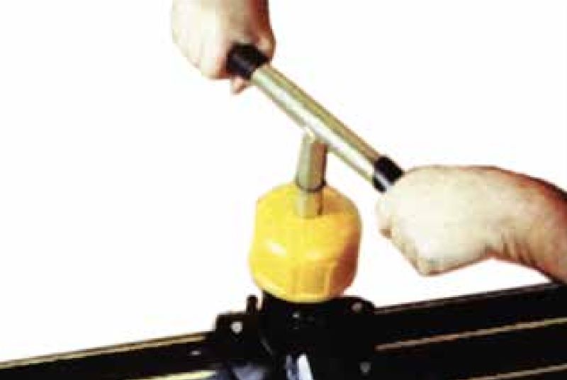 Компания Фриатек разработала и выпускает также патрубки-накладки (Saddle XL) с герметичной прокладкой по периметру нижней поверхности седловой части (Рис. 9 а). Такая конструкция позволяет крепить патрубок-накладку на поверхности трубы за счет создании пониженного давления (на 0,8 бар ниже атмосферного) в патрубке, из которого откачивается часть воздуха. Это достигается с помощью специального оборудования, включающего съемную механическую заглушку с краном, шланги, небольшой компрессор и манометр (Рис. 9 б).