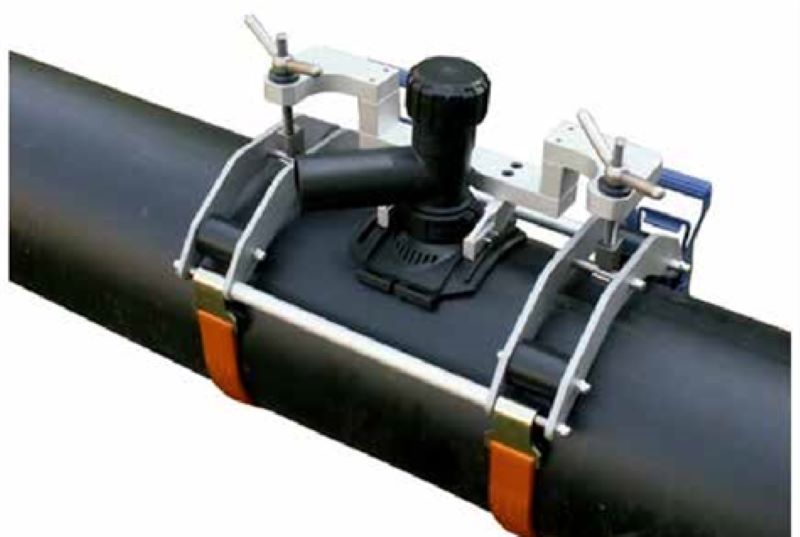 Седловой Т-образный отвод с закладными электронагревателями: седловой отвод с закладными электронагревателями со встроенным режущим инструментом для вырезки отверстия в трубе. После монтажа инструмент остается в теле детали.