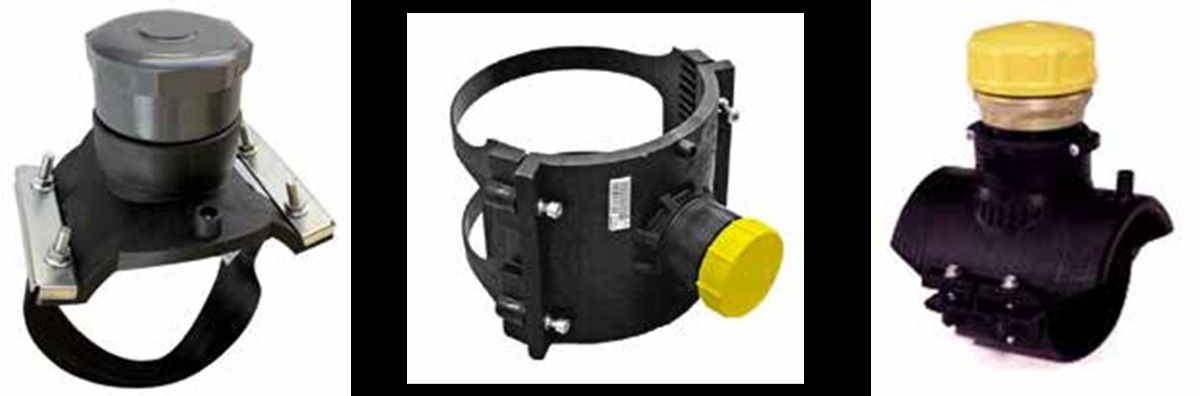 Так, у седловых отводов производства Фриатек (Рис. 1 в), которые в каталогах этой фирмы названы «арматурой для врезки под давлением с удлиненным выходным патрубком», головку после прорезания закрывают пробкой с резьбой, завинчивающейся внутрь головки. У седловых отводов марки Элофит производства фирмы Nupigeco и марки Георг Фишер пробка закручивается по внешней резьбе.
