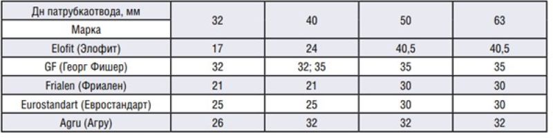 Диаметры фрез седловых отводов (т.е. диаметр сужения трубопровода) некоторых производителей, предлагаемых на российском рынке, приведены в таблице 1.