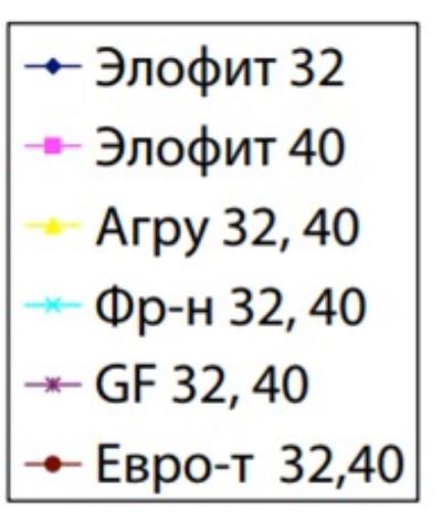 Для патрубков — отводов диаметром 32 и 40 мм наименьшее относительное падение давления газа наблюдается у седловых отводов производства фирмы «Георг Фишер». Для них относительное падение давления газа на диаметре основного трубопровода 63 мм примерно в полтора раза меньше, чем для седловых отводов марки «Элофит». Однако с увеличением диаметра основного трубопровода до 250 мм показатели относительного падения давления газа всех производителей возрастают и становятся близки по значению, в диапазоне 0,27–0,29.